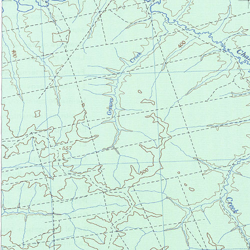 The topo map image to the left is not an exact representation. The image is based on the 1:1,000,000 scale map of the Yukon Territory. The actual 1:250,000 and 1:50,000 scale maps have additional detail not shown at the 1:1,000,000 level.