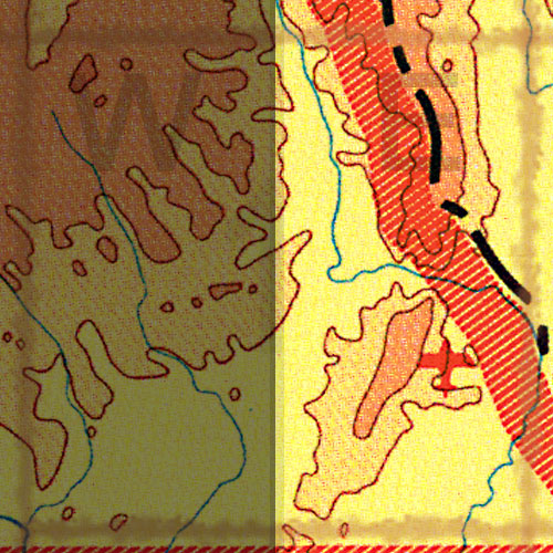 | The topo map image to the left is not an exact representation. The image is based on the 1:1,000,000 scale map of the Yukon Territory. The actual 1:250,000 and 1:50,000 scale maps have additional detail not shown at the 1:1,000,000 level. |