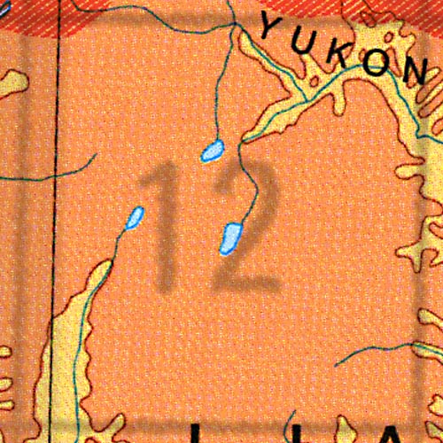 | The topo map image to the left is not an exact representation. The image is based on the 1:1,000,000 scale map of the Yukon Territory. The actual 1:250,000 and 1:50,000 scale maps have additional detail not shown at the 1:1,000,000 level. |
