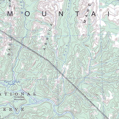 The topo map image to the left is not an exact representation. The image is based on the 1:1,000,000 scale map of the Yukon Territory. The actual 1:250,000 and 1:50,000 scale maps have additional detail not shown at the 1:1,000,000 level.